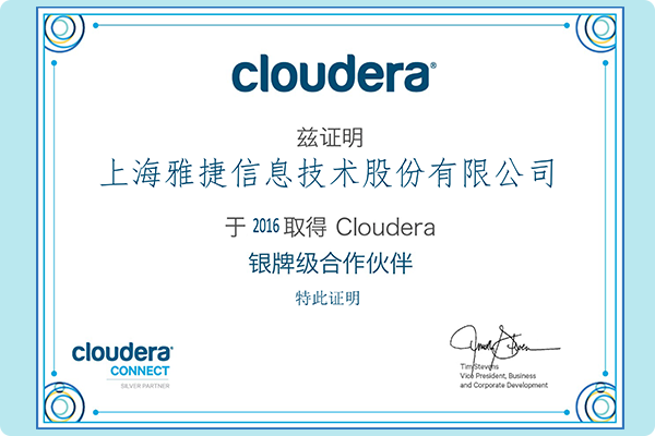 雅捷成为Cloudera银牌级合作伙伴